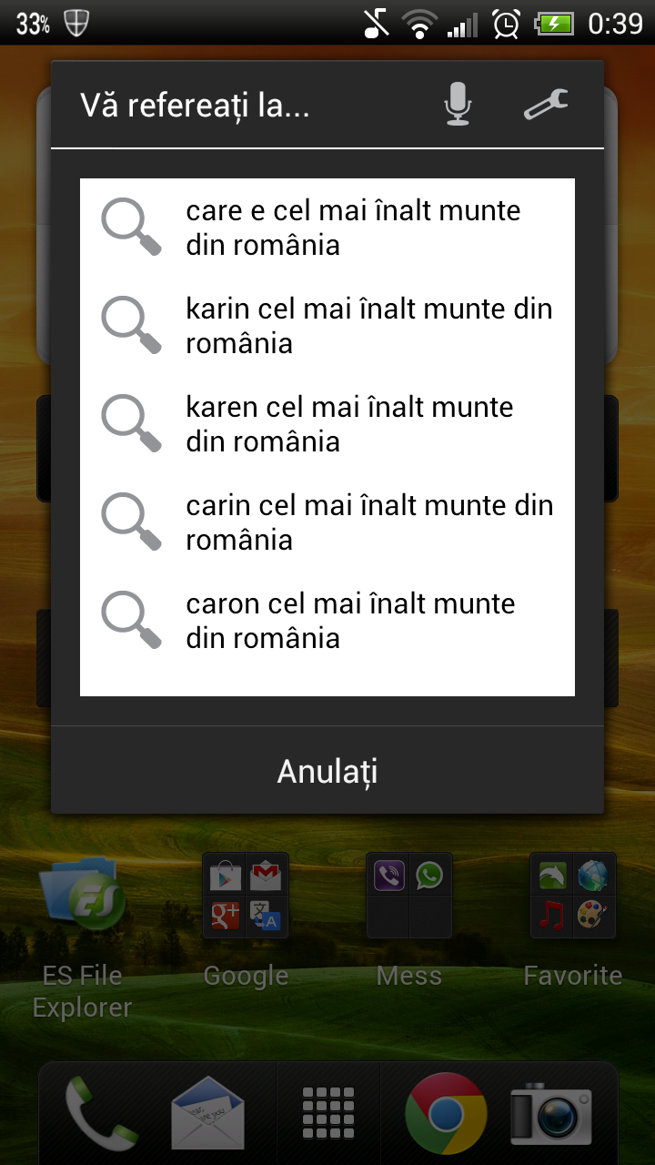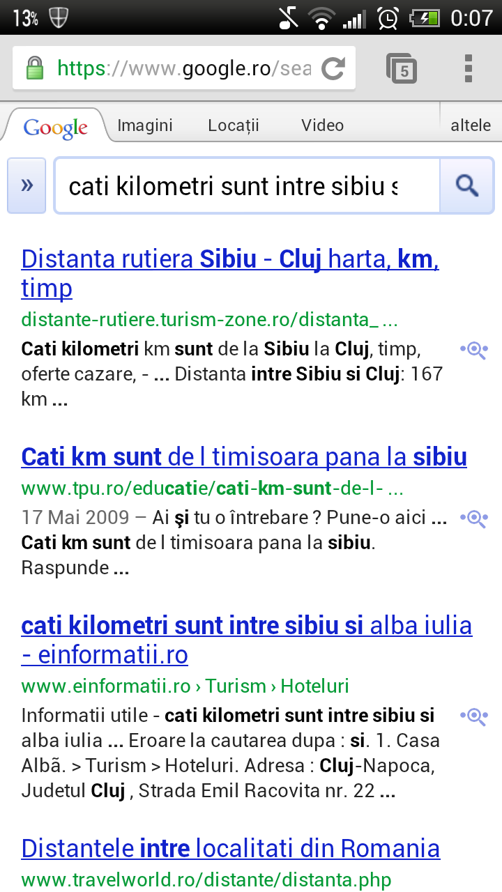In cautarile uzuale si simple aplicatia se descurca destul de bine. Am intrebat ce distanta e intre Sibiu si Cluj Napoca sau cum va fi vreamea in Mamaia. In numai cateva secunde informatiile s-au incarcat in browserul implicit. In cazul in care programul nu a “inteles” bine ce i-ati dictat va afisa mai multe alternative de cautare. Asadar, e bine sa vorbiti cat mai clar, iar daca e posibil si rar :). In general aplicatia va cauta exact ce ii spuneti.