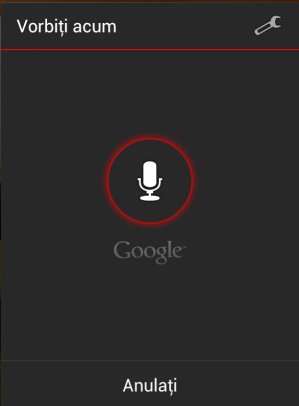 Daca telefonul tau ruleaza cel putin Android 2.2 tot ce trebuie sa faceti e sa apasati widgetul microfon din caseta de cautare Google. In cazul in care nu o aveti, puteti instala aplicatia Voice Search din Google Play. Nu trebuie sa va faceti probleme cu spatiul de stocare sau ram-ul telefonului, deoarece datele sunt prelucrate prin intermediul tehnologiilor gazduite in Cloud, nu pe telefonul mobil, ceea ce inseamnă că aplicatia este rapida si usor e utilizat.