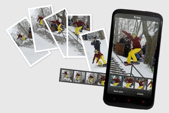 Prin îmbinarea funcțiilor camerei foto ale modelului anterior cu o serie de funcții inteligente incluse noii interfețe Sense 4+, HTC One X+ se remarcă pentru experiența completă. Cameră de 8MP cu diafragmă de f/2.0, senzor cu iluminare posterioară (BSI), Video Pic, HDR și mod de capturare în rafală printr-o simplă apăsare de buton. Nou-lansatul mod Autoportret, asociat camerei foto frontale, ajută utilizatorul să surprindă fotografii de înaltă calitate prin detectarea intuitivă a figurii umane din diferite unghiuri și aplicarea unor retușări subtile pielii și ochilor. Modul Turist (Sightseeing) devine cea mai scurtă cale pentru activarea capturii de imagine, eliminând nevoia de deblocare a ecranului și lansând instantaneu modul foto. Galeria a fost îmbunătățită prin două noi moduri de afișare a fotografiilor și clipurilor video, acestea fiind grupate în funcție de locul și data capturii.
