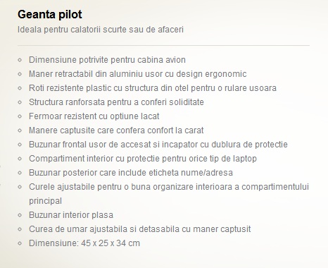 La ce concluzie am ajuns? Cea mai buna varianta pentru nevoile mele este o geanta pilot. In ea am loc destul si bine compartimentat atat pentru laptop cat si pentru restul celor necesare pentru o calatorie de scurta durata. Si daca stau bine sa ma gandesc este perfecta si pentru zborul cu avionul, pentru ca se incadreaza la bagajul de mana si astfel impusc mai multi iepuri deodata.