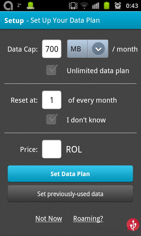 De setat nu ai multe lucruri, doar limita de trafic pe care o ai inclusa in abonament. In imagini o sa vedeti ca apare 700MB, atat am setat eu. Traficul contorizat este doar cel care se face pe conexiunea de date 3G, nu si traficul pe care il faceti prin WiFi.