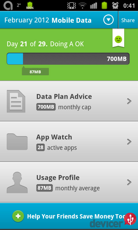 Ce poti urmari mai exact si ce mi-a placut la aceasta aplicatie? Faptul ca poti urmari oricand traficul facut pe 3G defalcat pe fiecare aplicatie in parte. Adica poti vedea cat trafic ai consumat navigand pe internet cu browserul, cat trafic ai facut cu clientul de GMail, cat ai consumat cu clientul de Twitter, cat ai consumat cu aplicatia Facebook, etc. Astfel iti poti optimiza consumul pentru a nu depasi traficul lunar inclus in abonament.