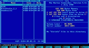 Deci mai aveam loc liber cam 10-15 MB pentru alte aplicatii sau jocuri. O aplicatie “must have” pe MS-DOS era Norton Commander, program ce permitea managementul fisierelor din computer, mai exact copierea, mutarea, vizualizarea lor.